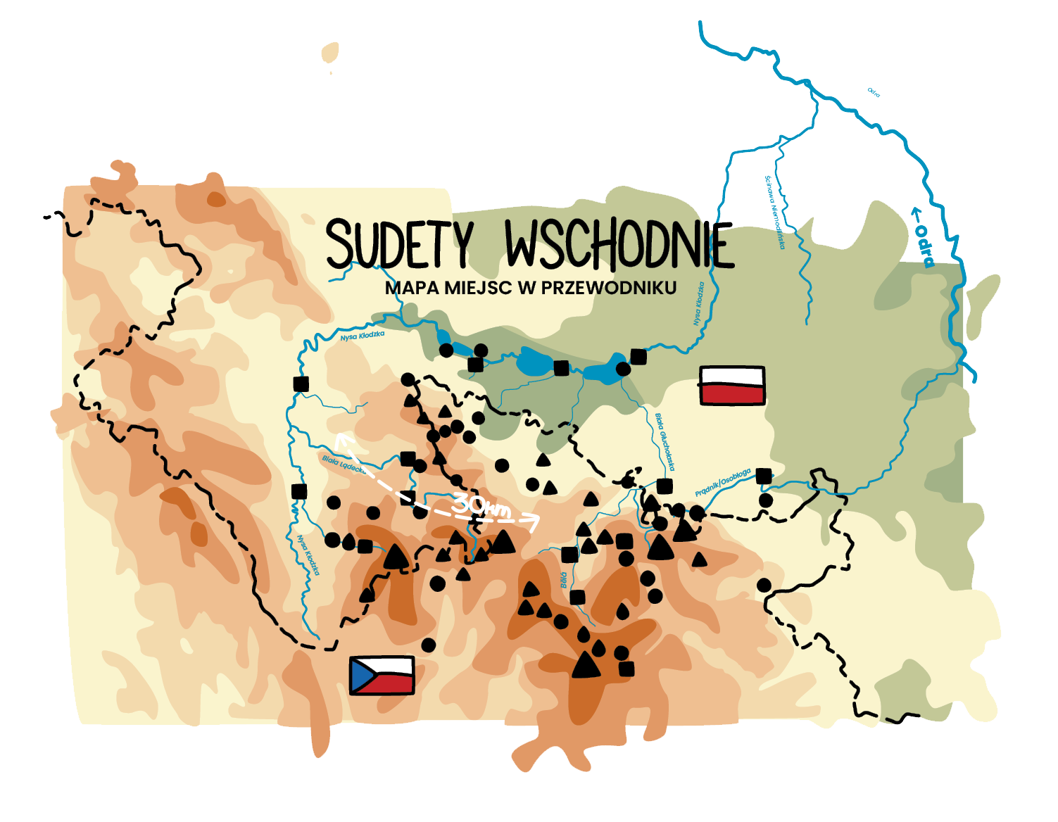 Sudety Wschodnie leżą w większości po czeskiej stronie i warto mieć paszport, aby odkryć je w pełnej okazałości. Ale w przewodniku znajdziesz też szlaki po polskiej stronie lub wzdłuż polsko-czeskiej granicy! Jeśli pobyt na danym szlaku lub miejscu wymaga posiadania paszportu, zaznaczam to odpowiednią ikoną.